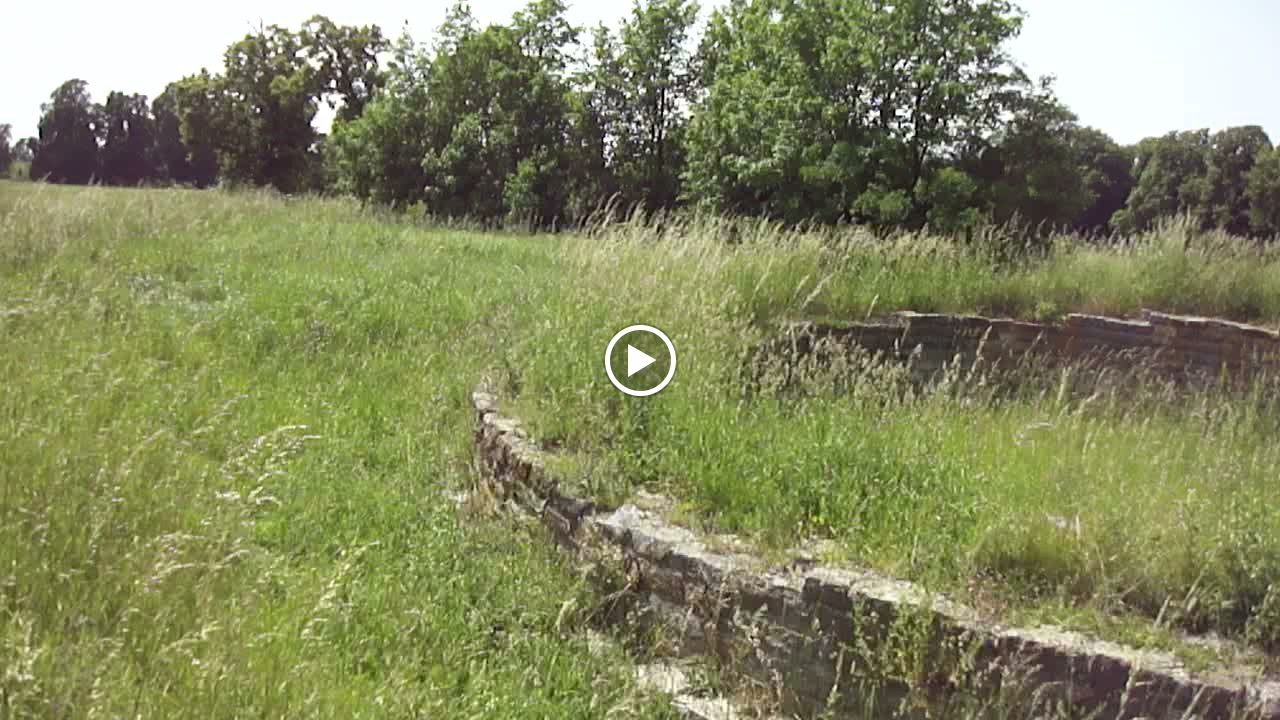 A térképen gabonaraktárnak nevezett romok bejáratánál kevés kaszálással találkoztam. Valami látható volt. Az ókeresztény bazilika a fűből alig látszott ki.